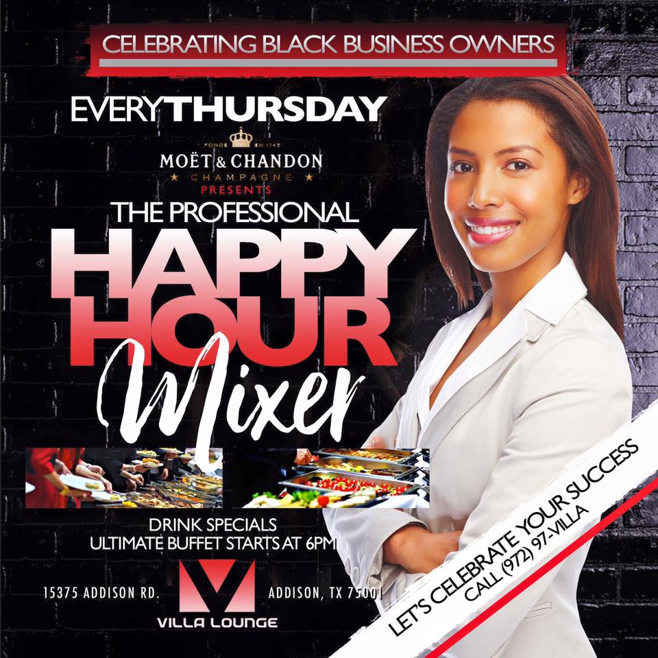 THURSDAY • AUGUST 4TH • Join us for a professional #HappyHourMixer • NO COVER • Enjoy all you can eat buffet + Hookahs + network with other #DallasBusiness Owners • Doors open at 5pm + BUFFET opens at 6pm • $4 Wells + $4 Martinis + DJ FLIP in the mix!